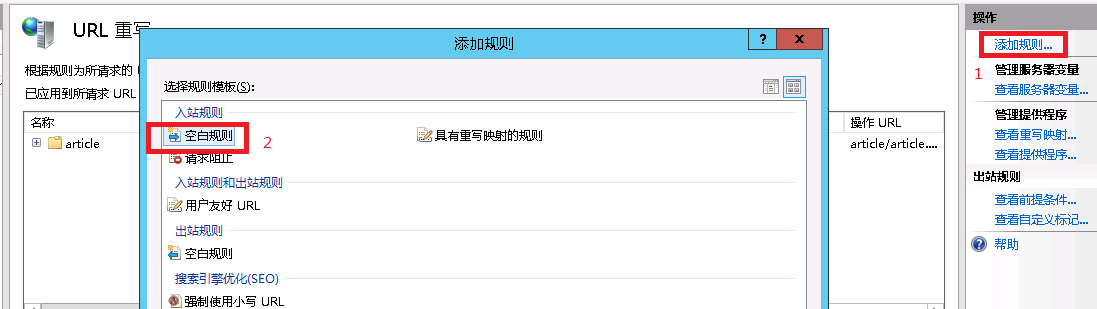 打开Url Rewriter,单击右边的添加规则,之后选择空白规则: