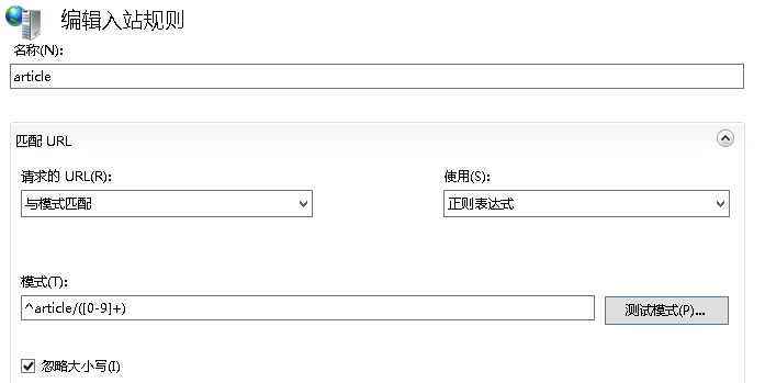 下载安装之后重启IIS就有这个选项了,现在我们开始正式设置URL重写 示例是将形如